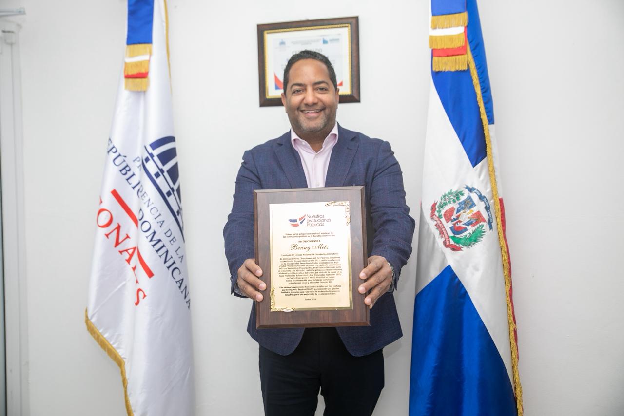 El presidente del Consejo Nacional de Discapacidad (CONADIS), Benny Metz, ha sido seleccionado como Funcionario Público del Mes por el portal Nuestras Instituciones Públicas. La distinción toma en cuenta las acciones realizadas por Metz el pasado mes, entre las que se resaltan: que, en su gestión en CONADIS, realizó una Semana de la Discapacidad llena de resultados incomparables, bajo el lema “Hacia un país más inclusivo”; se realizó la socialización del Plan Nacional de Discapacidad; en el Palacio Nacional, junto al presidente Luis Abinader, realizó la entrega de reconocimientos a líderes y entidades clave del sector; fue invitado de honor en la Copa Mundial de Baloncesto 3×3 de Olimpiadas Especiales 2025, en Puerto Rico; y con el PNUD formalizó un nuevo marco de cooperación para fortalecer la inclusión, la protección social y entidades clave de la RD. Esa y otras acciones le dan a Benny Metz el aval para ser reconocido como Funcionario Público del Mes.
