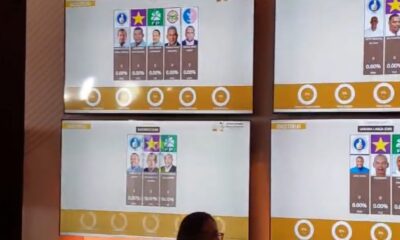Pantallas listas en el Centro de Divulgación de Datos de la Junta Central Electoral para comenzar a emitir loa boletines, según vayan llegando los resultados. Al...